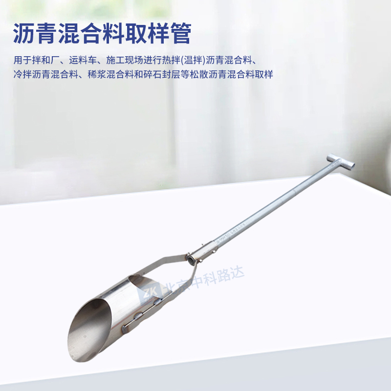 瀝青混合料取樣管用于拌和廠、運(yùn)料車、施工現(xiàn)場(chǎng)進(jìn)行熱拌(溫拌)瀝青混合料、冷拌瀝青混合料、稀漿混合料和碎石封層等松散瀝青混合料取樣。取樣管采購不銹鋼材料,手柄采用鍍鋅管。依據(jù)JTG 3410-2025《公路工程瀝青及瀝青混合料試驗(yàn)規(guī)程》中T0701-2025瀝青混合料取樣方法的標(biāo)準(zhǔn)要求。