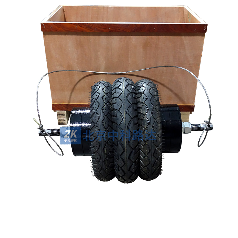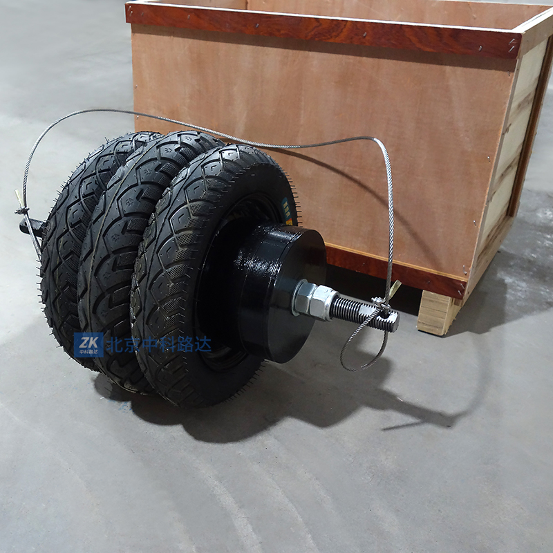 5、撞擊物體是總重量為50±0.1、66.7±0.1kg的軟體重物,由三個輪胎、兩個重塊和其它連接件組成,輪胎內(nèi)壓力宜為0.35±0.02MPa。