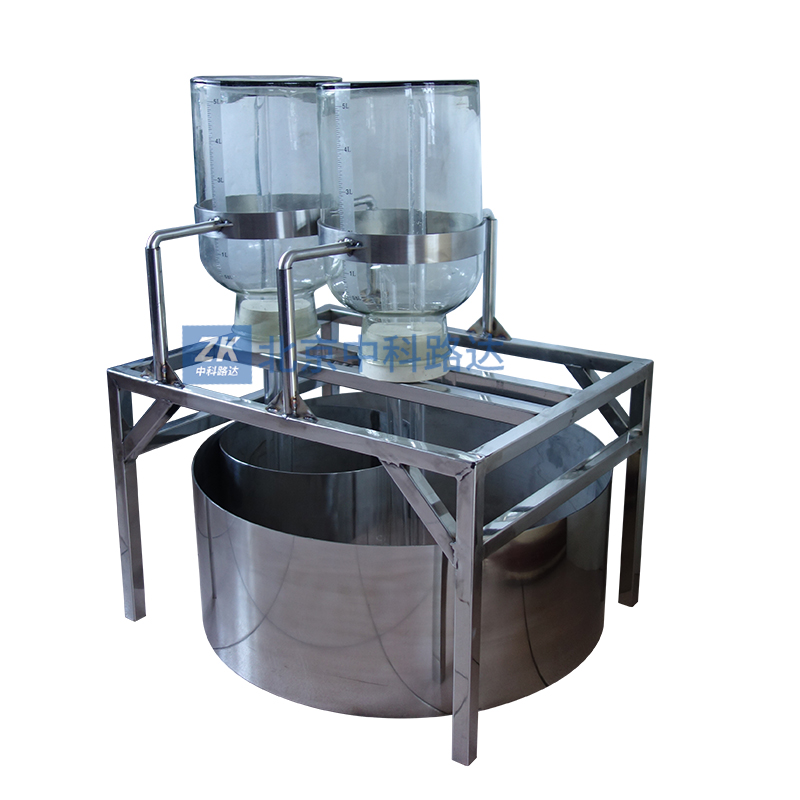 此裝置通過保持固定水頭高度向試坑注水,量測(cè)滲入土層的水量,以確定土層滲透系數(shù)的一種原位試驗(yàn)方法,試坑雙環(huán)注水試驗(yàn)裝置保留一只流量瓶和一只鐵環(huán)即可做單環(huán)注水試驗(yàn)使用。