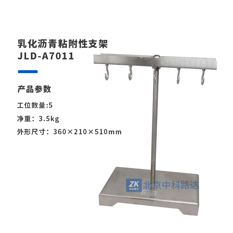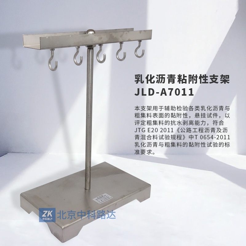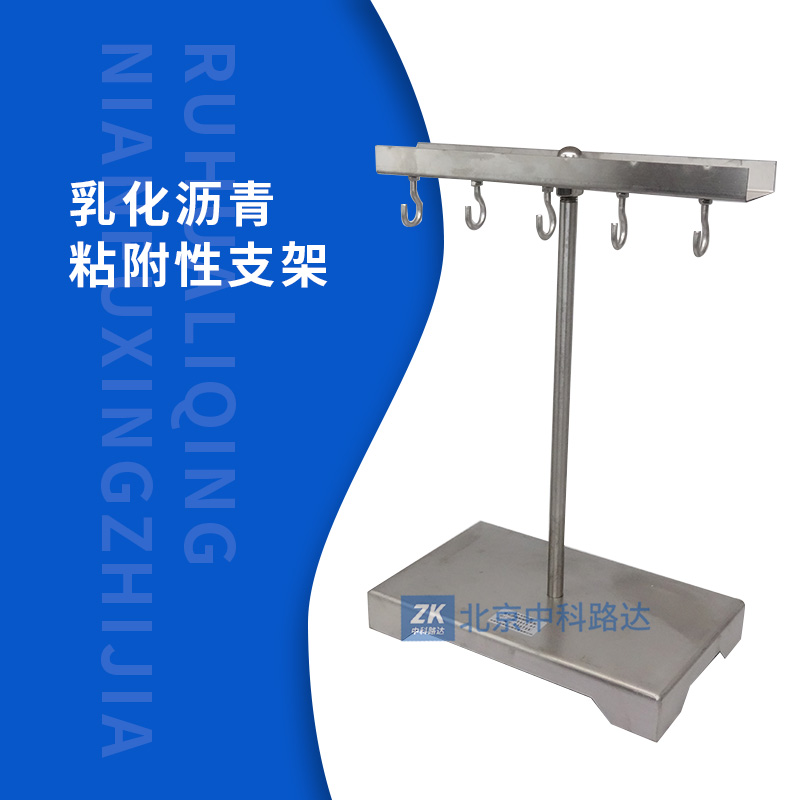 支架用于輔助檢驗各類乳化瀝青與粗集料表面的黏附性,懸掛試件,以評定粗集料的抗水剝離能力,符合JTG E20 2011《公路工程瀝青及瀝青混合料試驗規(guī)程》T 0654-2011 乳化瀝青與粗集料的黏附性試驗的標準要求。