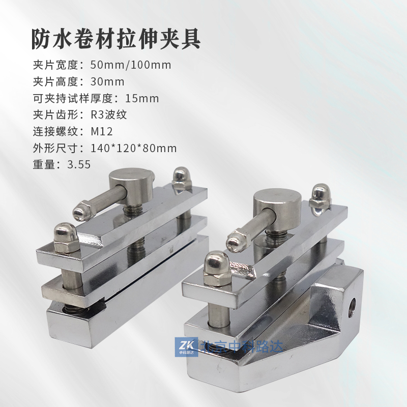 一、產(chǎn)品簡介本夾具配合電子拉力試驗(yàn)機(jī)使用,用于測試防水卷材,橡膠片或塑料等材料,夾具具加持緊,不打滑,廣泛應(yīng)用于防水卷材,橡膠行業(yè)或者塑料行業(yè).二、主要技術(shù)參數(shù)1. 夾片寬度:50mm/100mm 2. 夾片高度:30mm3. 可夾持試樣厚度:15mm4. 夾片齒形:R3波紋5. 連接螺紋:M126. 外形尺寸:140*120*80mm7. 重量:3.55kg...