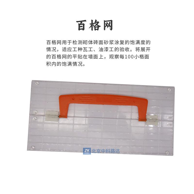 百格網(wǎng)用于檢測砌體磚面砂漿涂復(fù)的飽滿度的情況,適應(yīng)工種瓦工、油漆工的驗收。將展開的百格網(wǎng)的平貼在墻面上,觀察每100小格面積內(nèi)的飽滿情況。