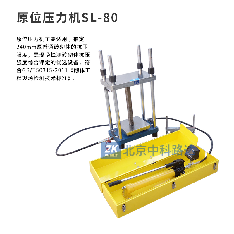 原位壓力機主要適用于推定240mm厚普通磚砌體的抗壓強度,是現(xiàn)場檢測磚砌體抗壓強度綜合評定的優(yōu)選設備,符合GB/T50315-2011《砌體工程現(xiàn)場檢測技術標準》。