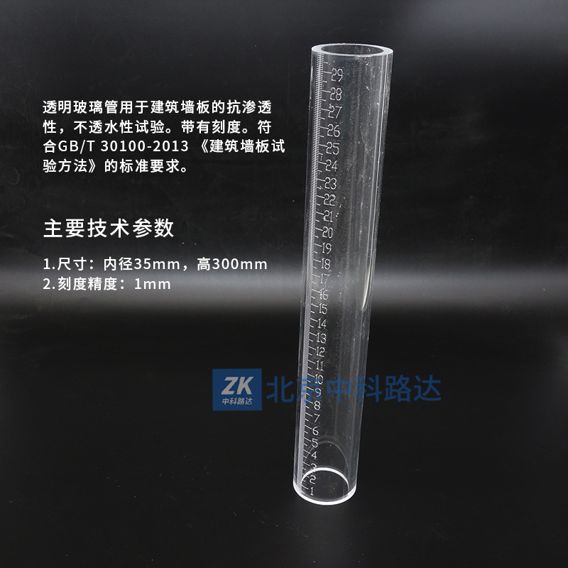 透明玻璃管用于建筑墻板的抗?jié)B透性,不透水性試驗。帶有刻度。符合GB/T 30100-2013 《建筑墻板試驗方法》的標準要求。