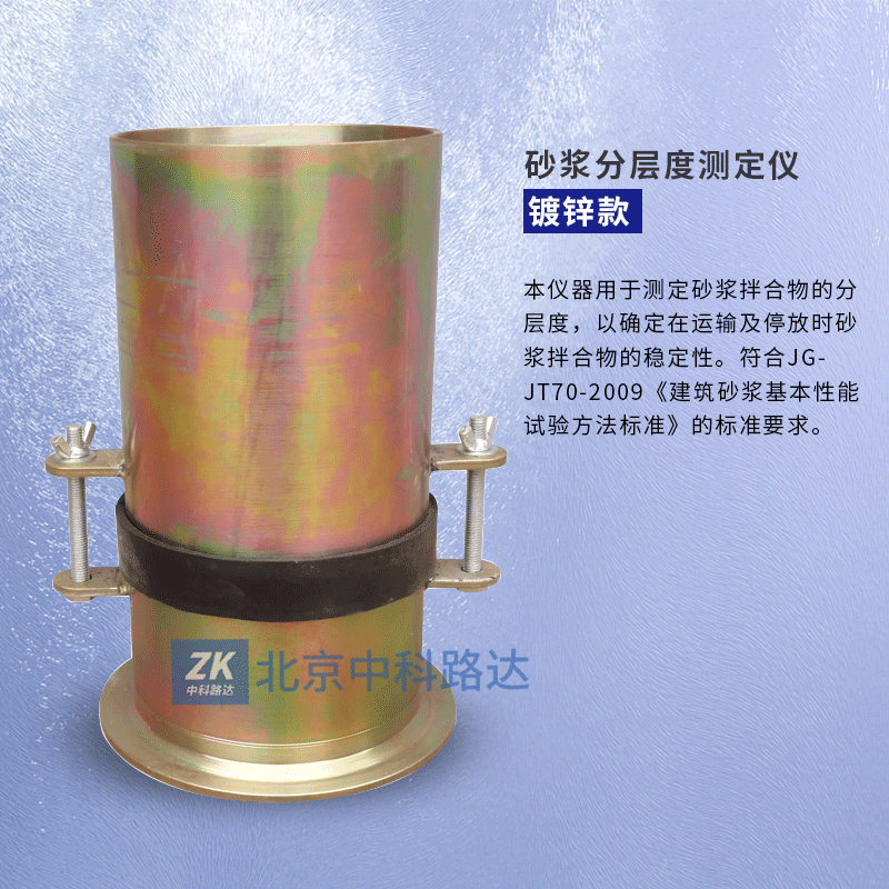 本儀器用于測定砂漿拌合物的分層度,以確定在運(yùn)輸及停放時(shí)砂漿拌合物的穩(wěn)定性。符合JGJT70-2009《建筑砂漿基本性能試驗(yàn)方法標(biāo)準(zhǔn)》的標(biāo)準(zhǔn)要求。