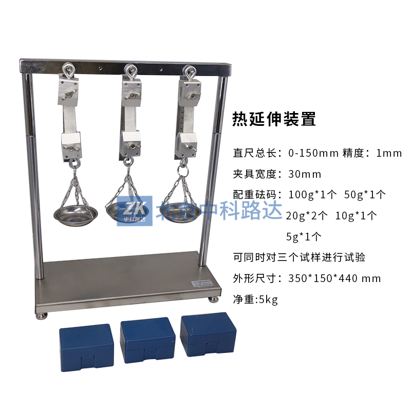 熱延伸裝置采用耐高溫材質(zhì)制造,用來(lái)檢測(cè)橡膠、塑料或類似材料在高溫老化試驗(yàn)時(shí)的熱延伸性能。符合GB/T2951.12-2008《電纜和光纜絕緣和護(hù)套材料 通用試驗(yàn)方法 第12部分:熱老化試驗(yàn)方法》的標(biāo)準(zhǔn)要求。采用鋁合金波紋夾具,夾持方便牢固;不銹鋼直尺,刻度清晰;多種配重砝碼,自由組合。