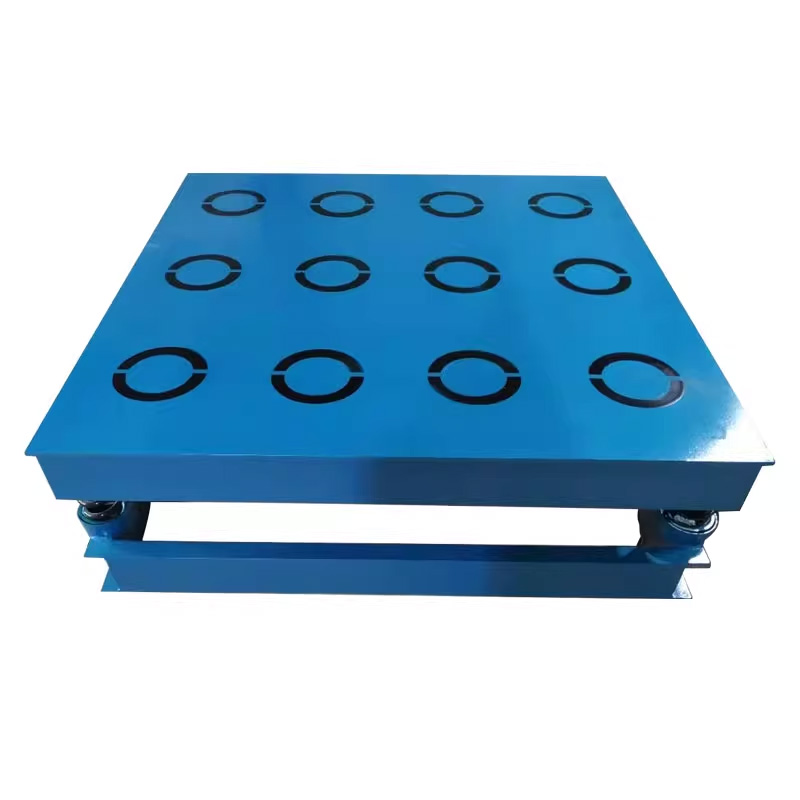 3、振動(dòng)臺在振動(dòng)過程中,混凝土制品必須牢固的緊固在振動(dòng)臺面上,所需振實(shí)物制品放置要與臺面對稱,使負(fù)荷平衡,振實(shí)制品的緊固裝置,用戶可根據(jù)自己的需要自行設(shè)計(jì)配置。