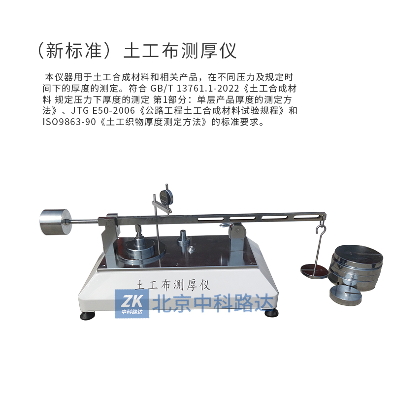 GB/T 13761.1-2022《土工合成材料 規(guī)定壓力下厚度的測定 第1部分:單層產(chǎn)品厚度的測定方法》、JTG E50-2006《公路工程土工合成材料試驗規(guī)程》和ISO9863-90《土工織物厚度測定方法》的標(biāo)準(zhǔn)要求。
