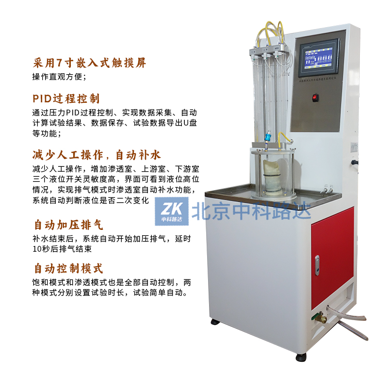 5、飽和模式和滲透模式也是全部自動控制,兩種模式分別設(shè)置試驗(yàn)時(shí)長,試驗(yàn)簡單自動。