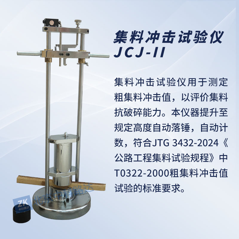 集料沖擊試驗儀用于測定粗集料沖擊值,以評價集料抗破碎能力。本儀器提升至規(guī)定高度自動落錘,自動計數(shù),符合JTG 3432-2024《公路工程集料試驗規(guī)程》中T0322-2000粗集料沖擊值試驗的標(biāo)準(zhǔn)要求。