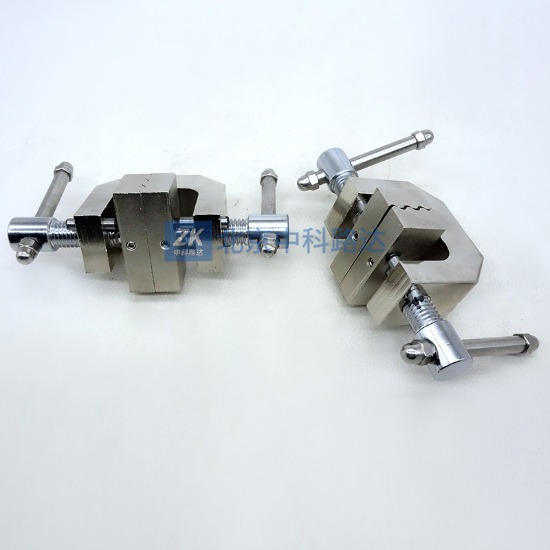本夾具配合試驗(yàn)機(jī)用于布料,皮革,木材,膠粘劑等材料的拉伸,剪切試驗(yàn),雙邊鎖緊,中心可調(diào),夾片齒形為R2波紋形狀,不易打滑。