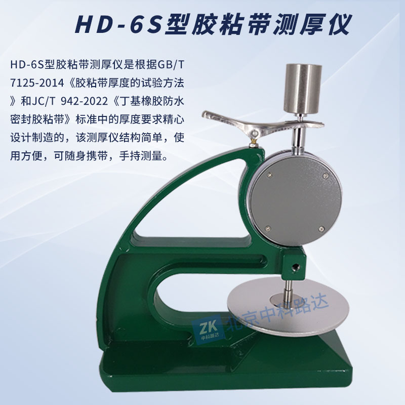HD-6S型膠粘帶測(cè)厚儀是根據(jù)GB/T 7125-2014膠粘帶厚度的試驗(yàn)方法JC/T 942-2022《丁基橡膠防水密封膠粘帶》標(biāo)準(zhǔn)中的厚度要求精心設(shè)計(jì)制造的,該測(cè)厚儀結(jié)構(gòu)簡(jiǎn)單,使用方便,可隨身攜帶,手持測(cè)量。