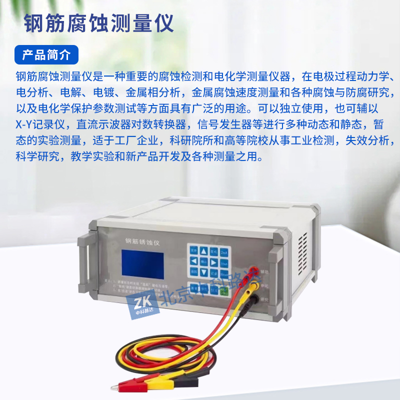 鋼筋腐蝕測量儀是一種重要的腐蝕檢測和電化學(xué)測量儀器,在電極過程動力學(xué)、電分析、電解、電鍍、金屬相分析,金屬腐蝕速度測量和各種腐蝕與防腐研究,以及電化學(xué)保護(hù)參數(shù)測試等方面具有廣泛的用途。可以獨立使用,也可輔以X-Y記錄儀,直流示波器對數(shù)轉(zhuǎn)換器,信號發(fā)生器等進(jìn)行多種動態(tài)和靜態(tài),暫態(tài)的實驗測量,適于工廠企業(yè),科研院所和高等院校從事工業(yè)檢測,失效分析,科學(xué)研究,教學(xué)實驗和新產(chǎn)品開發(fā)及各種測量之用。
