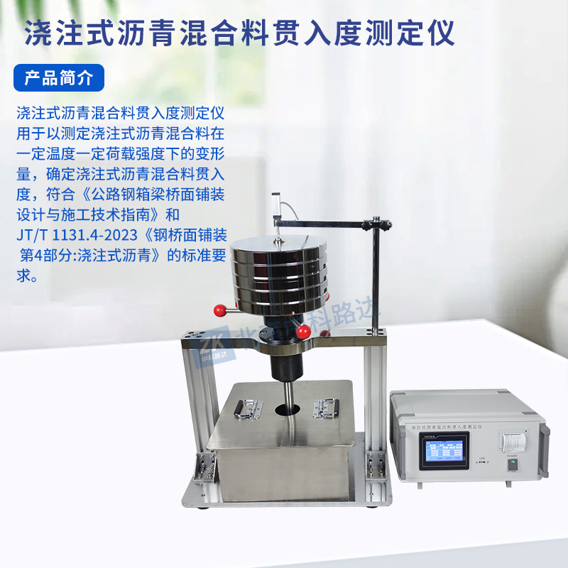 澆注式瀝青混合料貫入度測定儀用于以測定澆注式瀝青混合料在一定溫度一定荷載強(qiáng)度下的變形量,確定澆注式瀝青混合料貫入度,符合《公路鋼箱梁橋面鋪裝設(shè)計(jì)與施工技術(shù)指南》和JT/T 1131.4-2023《鋼橋面鋪裝 第4部分:澆注式瀝青》的標(biāo)準(zhǔn)要求。...
