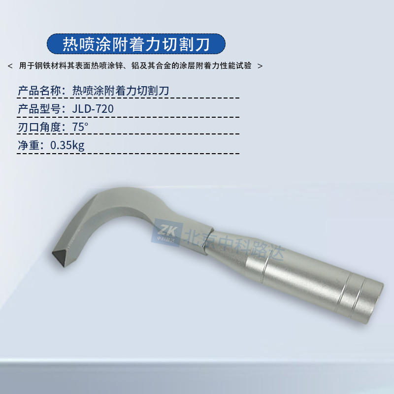 熱噴涂附著力切割刀主要用于鋼鐵材料其表面熱噴涂鋅、鋁及其合金涂層附著力性能試驗。采用硬質(zhì)合金刃口,耐磨性好,刀刃鋒利,硬度高,符合GB/T 9793-2012熱噴涂 金屬和其他無機覆蓋層 鋅、鋁及其合金》的標準要求。