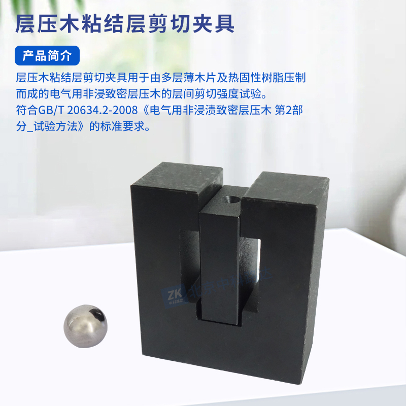 層壓木粘結(jié)層剪切夾具用于由多層薄木片及熱固性樹脂壓制而成的電氣用非浸致密層壓木的層間剪切強(qiáng)度試驗。符合GB/T 20634.2-2008《電氣用非浸漬致密層壓木 第2部分_試驗方法》的標(biāo)準(zhǔn)要求。