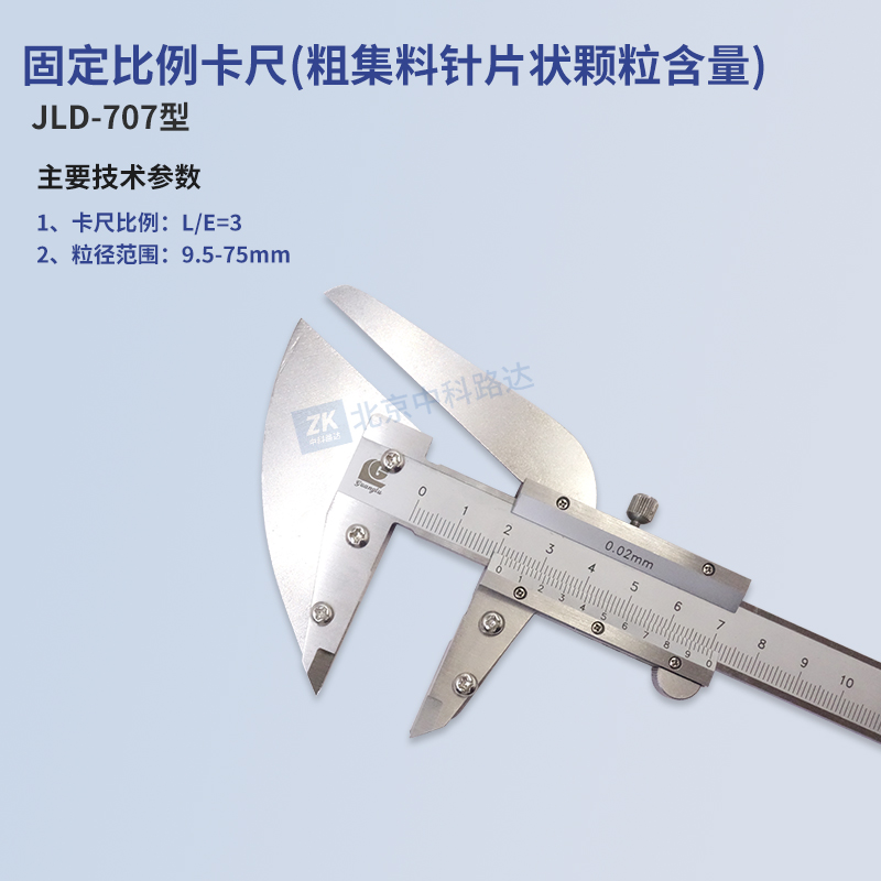 固定比例卡尺適用于卡尺法測(cè)定粗集料的針片狀顆粒含量,是指用最大長(zhǎng)度與最小厚度之比大于3的顆粒。符合JTG 3432-2024《公路工程集料試驗(yàn)規(guī)程》中T 0312-2005粗集料針片狀顆粒含量試驗(yàn)(卡尺法)的標(biāo)準(zhǔn)要求。